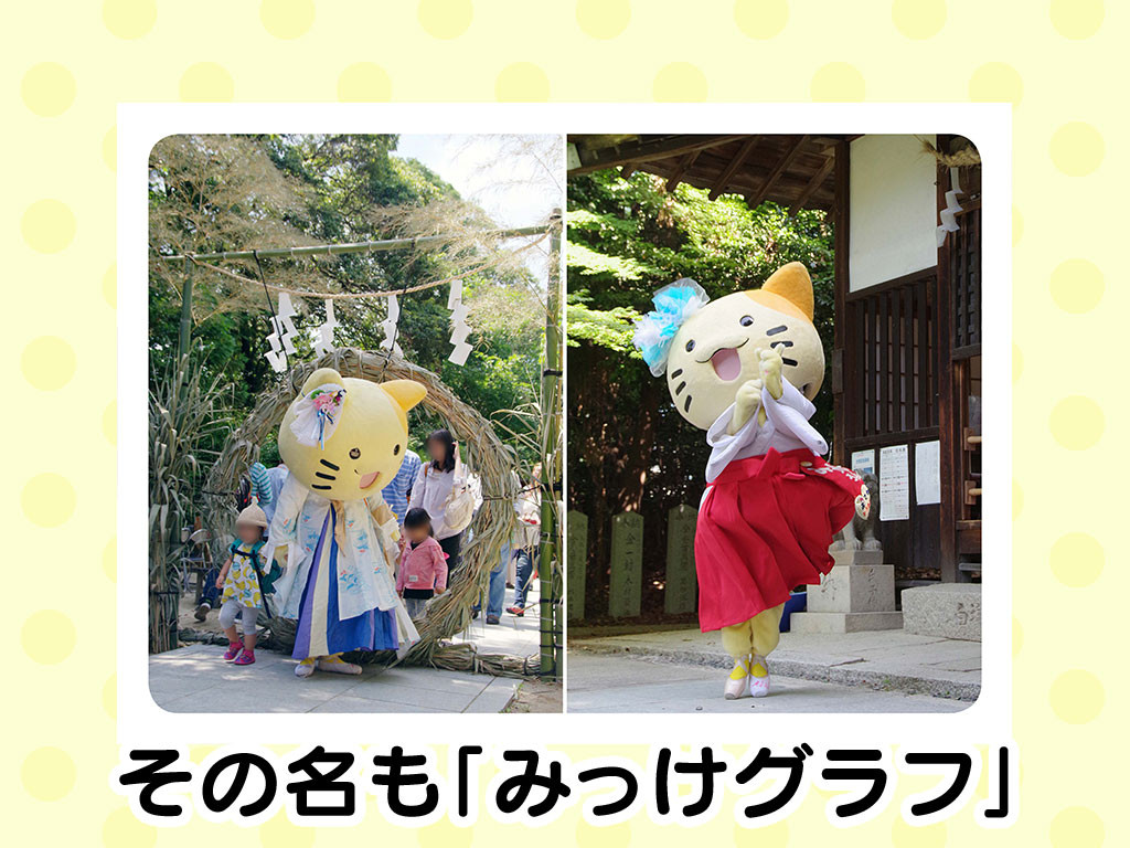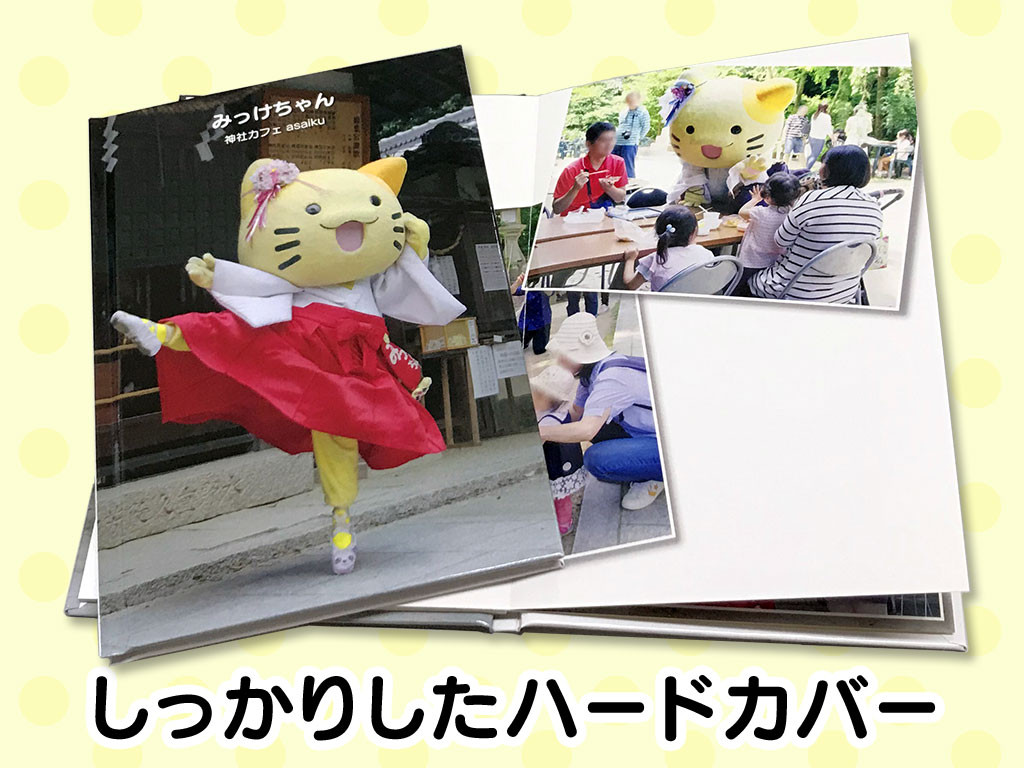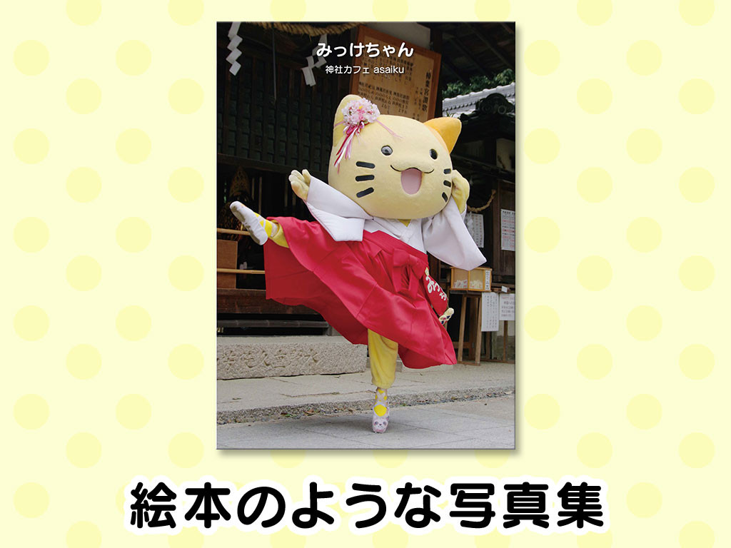 みっけちゃんのオリジナルの写真集。その名も「みっけグラフ」しっかりしたハードカバーと綺麗な発色、可愛いみっけちゃんをいつでも見返すことができます。今回はみっけちゃんの活動拠点である大阪府枚方市の交野天神社asaikuでの様子をメインに作成しました。どうぞお手元に。【仕様】<A5>213mm×150mm(厚さ13mm)24ページ(写真点数24枚)
